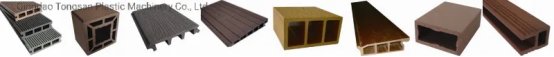 The wood-plastic is a new kind of synthetic material which uses PVC,PP,PE resin or recycled plastic and plant fibre ( wood powder,chaff,straw etc.) as raw material and through the process of mixing,granulation,exrusion,calibrating,drawing off and cutting. This kind of wood-plastic materials are not only very similar with natural wood in appearance and feel,but also with the same characteristics as wood of excisable, planeable,sawable, unmatched grip,low bibulous rate, good moisture resistance, mothproof,mildew resistance,good resistance to acid and alkali,anti-corrosion, and it has the feature of fire resistance.The products are non-toxic,non-polluting,environment-friendly and save-energied, without formaldehyde, benzene and ammonia and other harmful substances.The wood-plastic products are widely used in outdoor floor,hydrophilic construction,balcony,landscape architecture,chairs and benches, fences, indoor doors and windows, furnitures, etc.