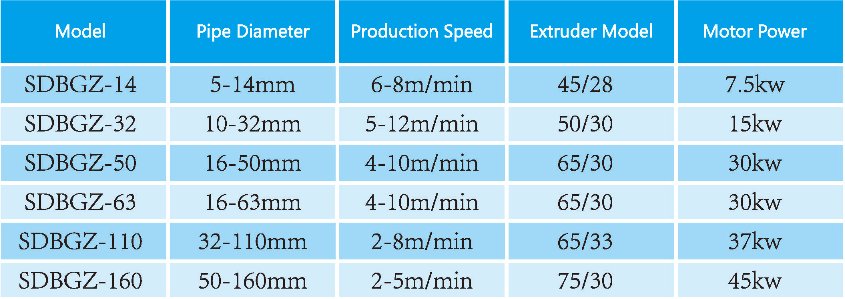 We also have normal speed single wall corrugated pipe production line, the line speed can upto 8-12m/min